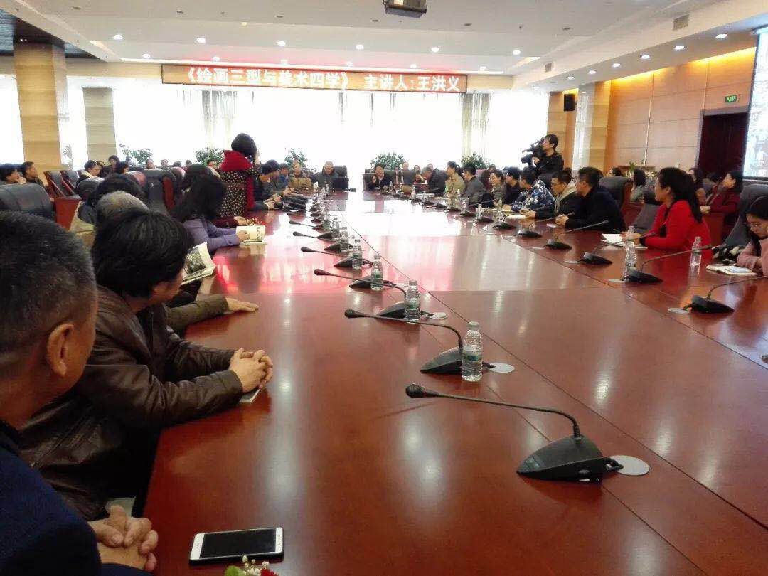 多年来美术与设计学院积极配合大庆市文联美协、大庆油田文联等团体举办的艺术展览交流活动,为此多年来经常派出师生参加各类活动的开幕式或座谈交流等。不仅是为了开拓师生视野提高艺术欣赏与创新能力,也体现了美术与设计学院的影响力和参与度,在本地文化创意交流活动中的作用。本次活动美术与设计学院副院长张立翔带队,师生100余人参加了展览并聆听了讲座。活动的主讲嘉宾是我国著名的文艺评论家,上海大学教授,博士生导师,公共艺术杂志副主编。王洪义先生为大家作主题为《绘画三型与美术四学》学术讲座。主要是针对大庆的画家如何结合本地素材进行艺术创作,相信只要通过我们的不断的文化交流,大庆的文化艺术一定能够得到快速的发展!几位教师与王洪义教授就如何利用有限的课时更好地进行美术史教学等专业问题进行了探讨。