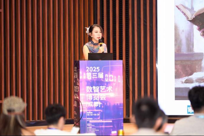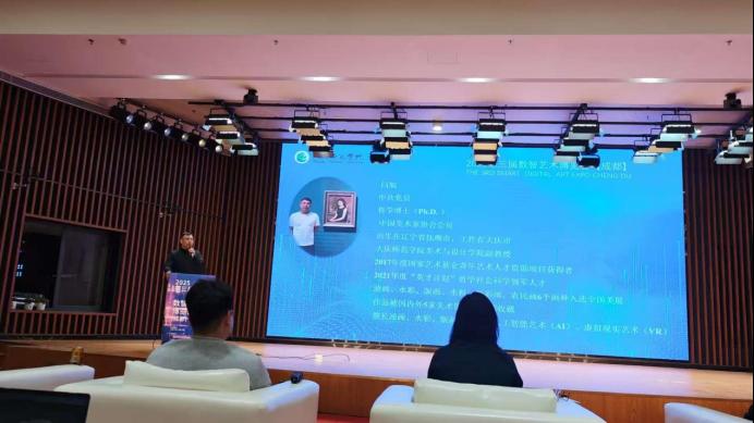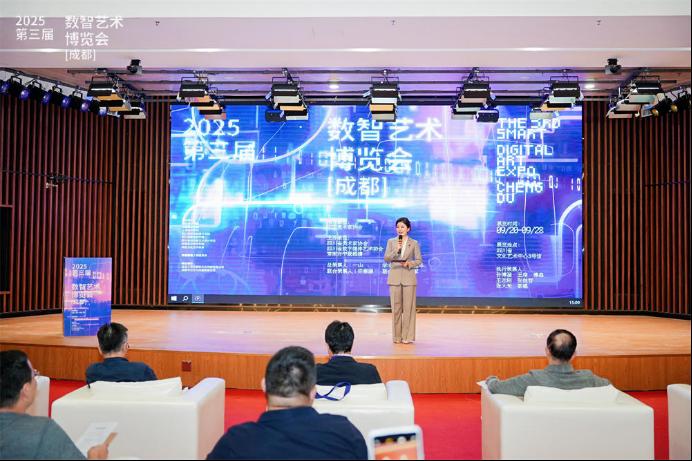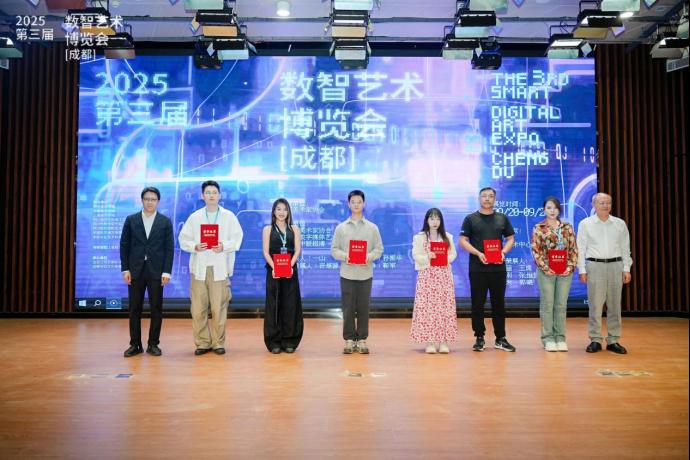 2025年9月20日下午,“2025第三届数智艺术博览会(成都)”在四川省文化艺术中心3号馆拉开帷幕,美术与设计学院教师闫旭、佟雪松获得优胜论文奖,并于9月21日在大会现场宣读论文。