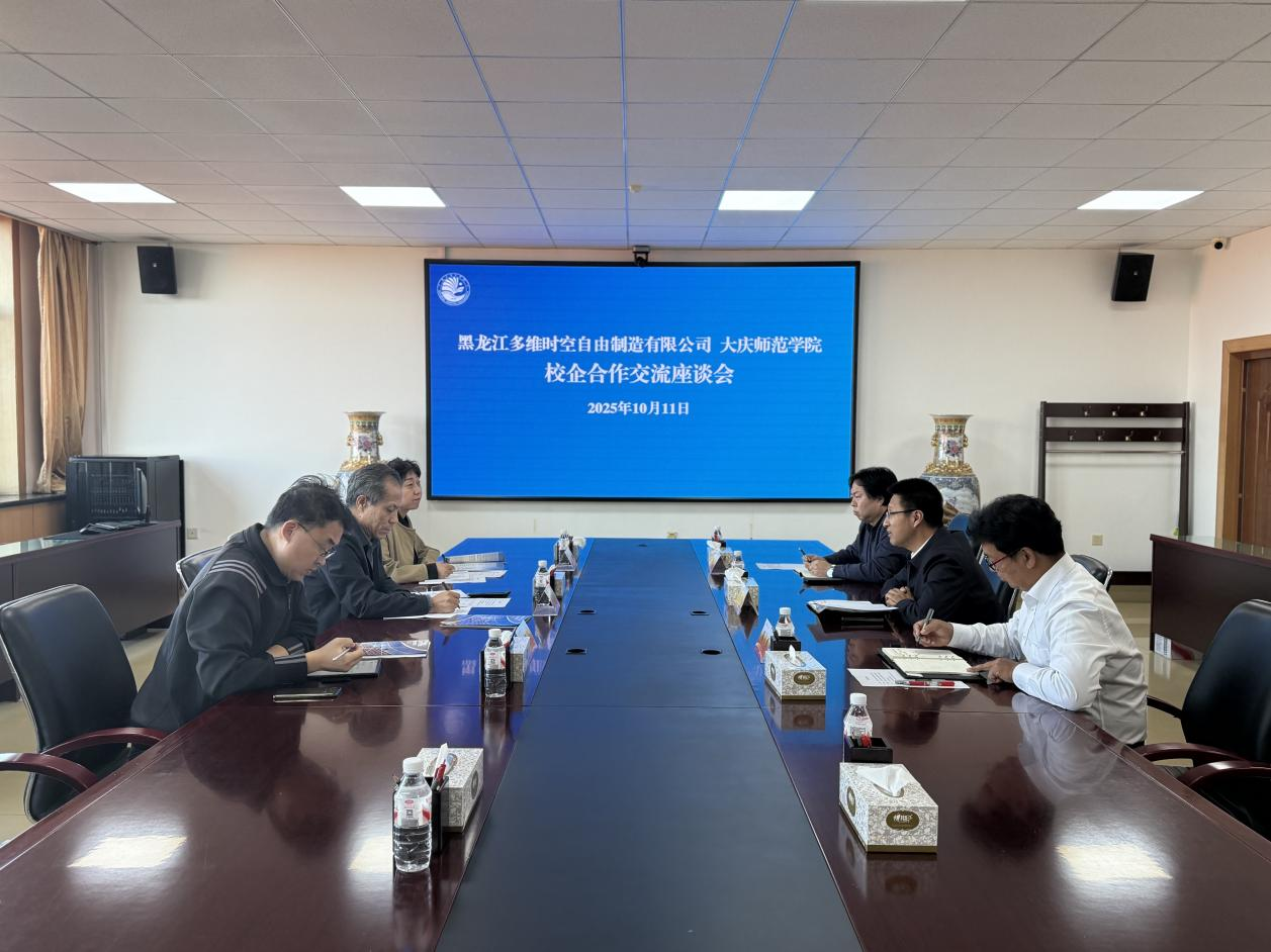 10月11日下午,我校与黑龙江多维时空自由制造有限公司举行校企合作交流座谈会。黑龙江多维时空自由制造有限公司总经理刘思佥一行3人、校长张平、美术与设计学院党总支书记兼院长张立翔和科研处处长陈立勇出席会议。